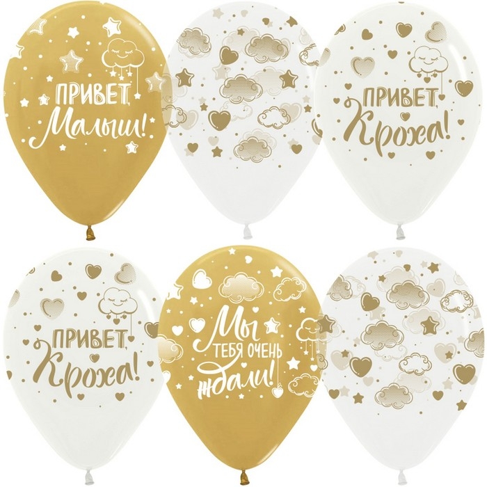 Шар латексный 12" «Привет, Кроха!» ассорти, хром, 5 ст., набор 25 шт.