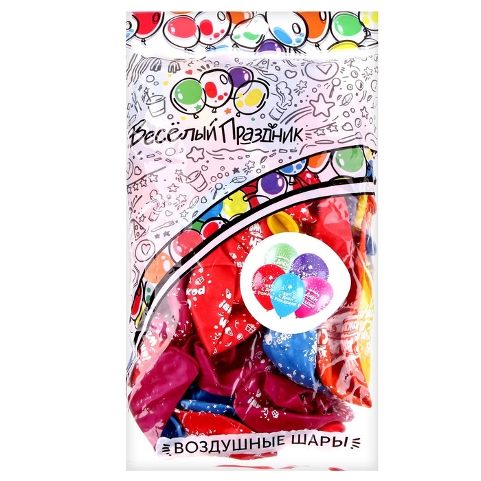 Шар латексный 12" «С Днём Рождения Микс», ассорти, пастель, 5 ст., набор 50 шт.