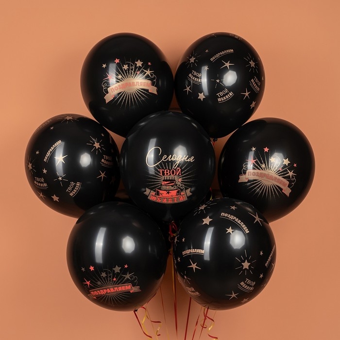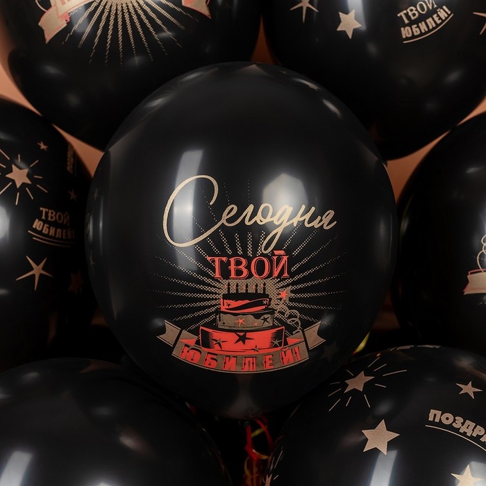 Шар латексный 12" «Сегодня Твой Юбилей», чёрный, 5 ст., набор 25 шт. МИКС
