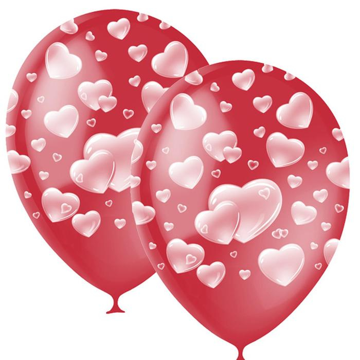 Шар латексный 12" «Сердца», декоратор, 5-сторонний, набор 25 шт., цвет красный