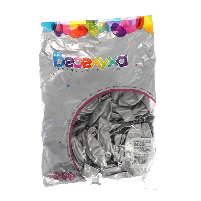 Шар латексный 12", зеркальный, хром, набор 50 шт., серебро