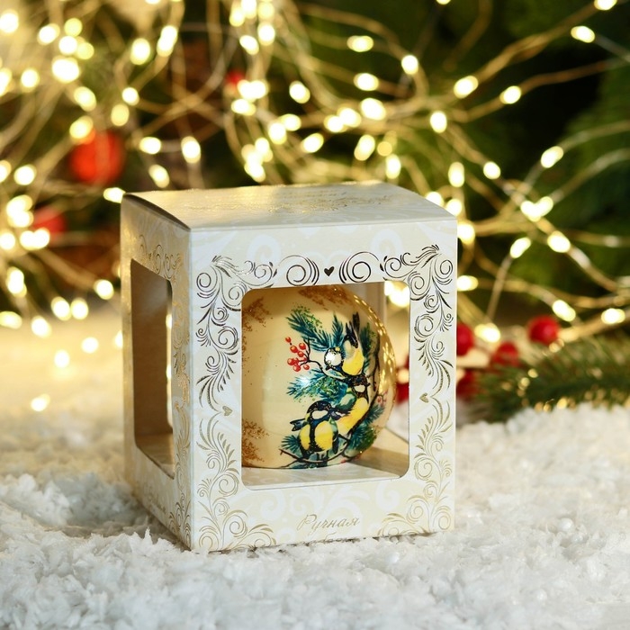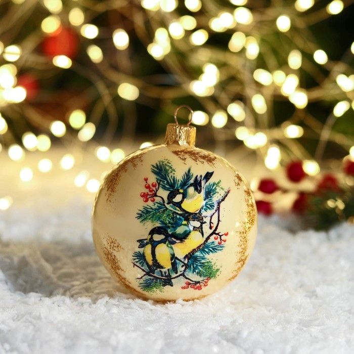 Шар новогодний "Синички" 8 см