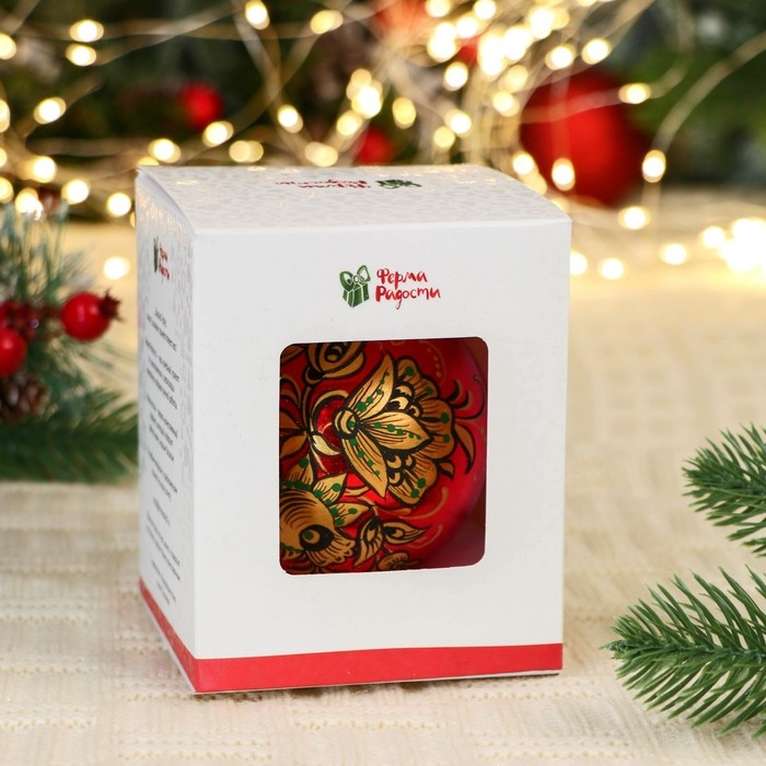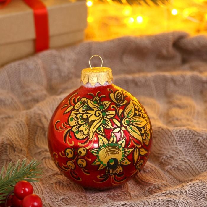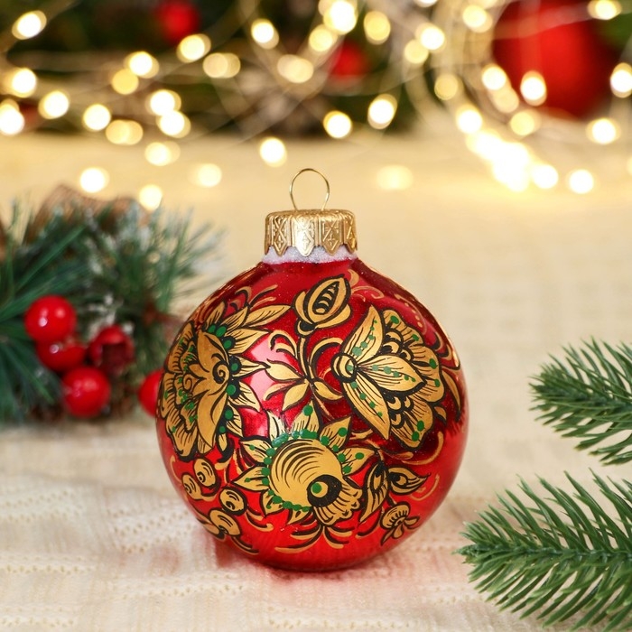 Шар с ручной росписью 80 мм «Хохлома»