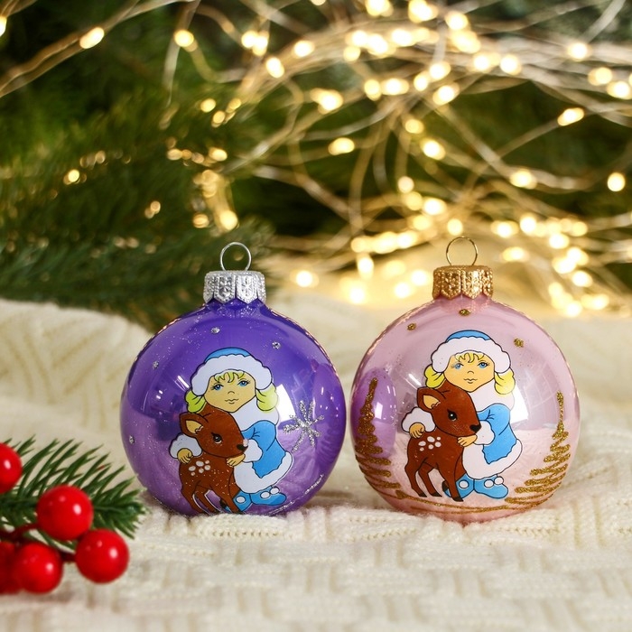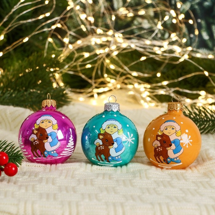 Шар "Снегурочка с олененком" 6,5 см, микс