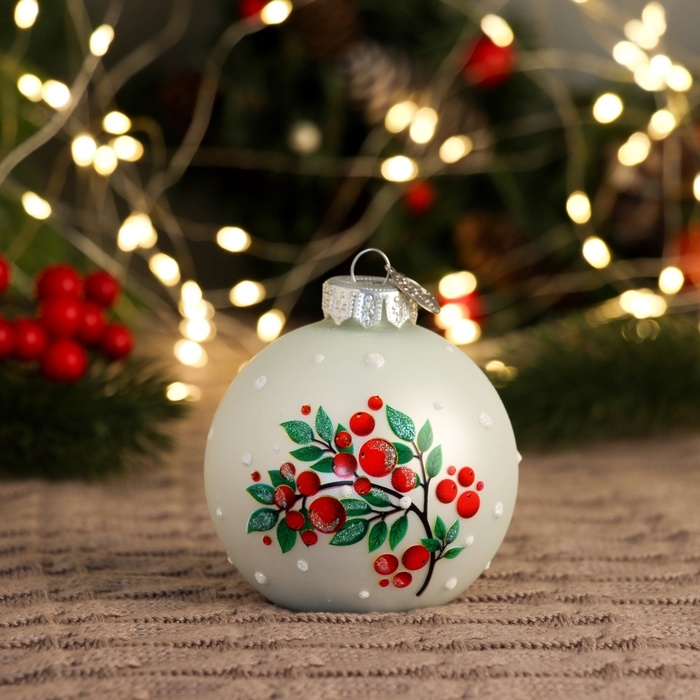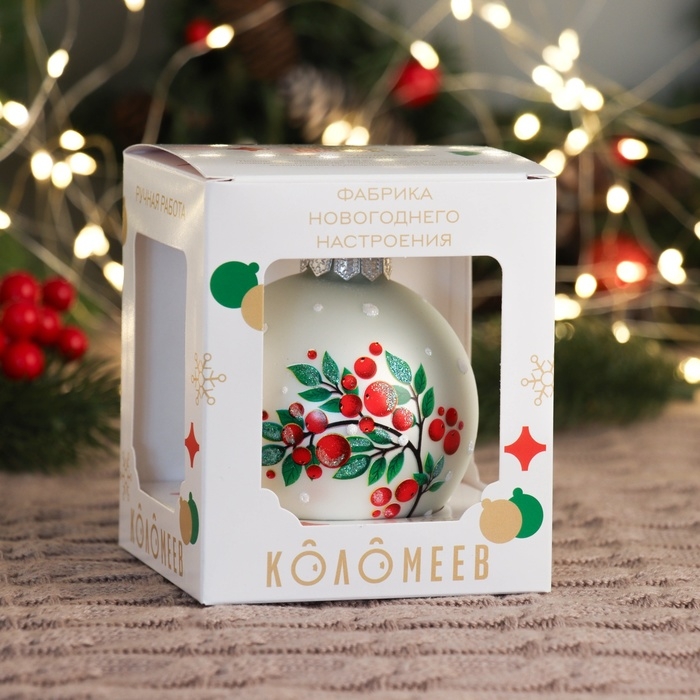 Шар "Веточка рябины", 80 мм., в подарочной упаковке