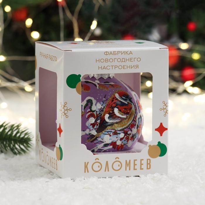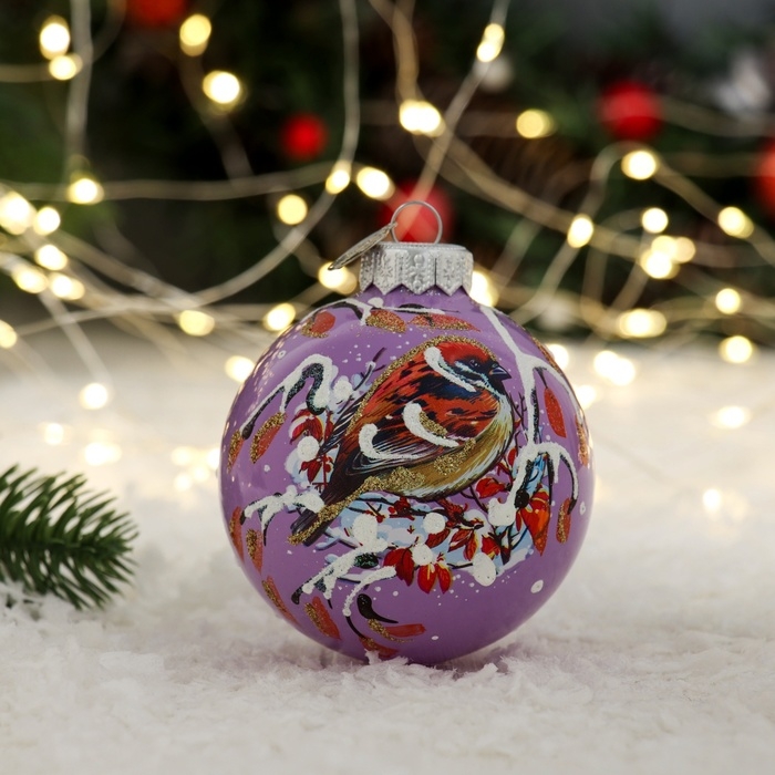 Шар "Воробей зимний", 80 мм., в подарочной упаковке