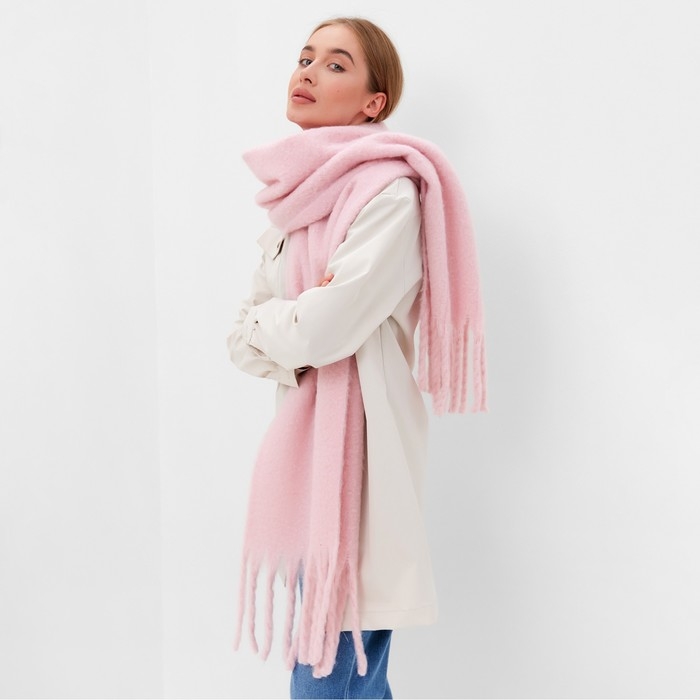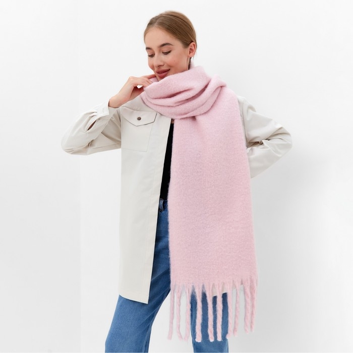 Шарф зимний объемный с кистями MINAKU 210*38+18 см цвет розовый