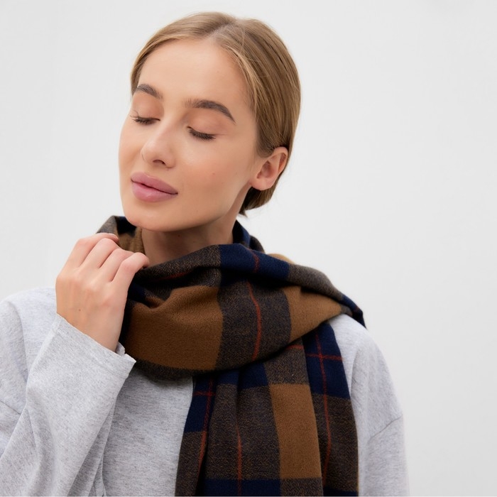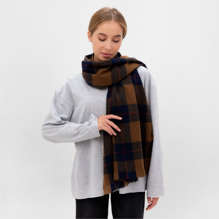 Шарф зимний с кистями MINAKU 65*180 + 3 см клетка