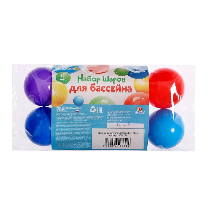 Шарики для сухого бассейна, 8 штук, диаметр — 5 см