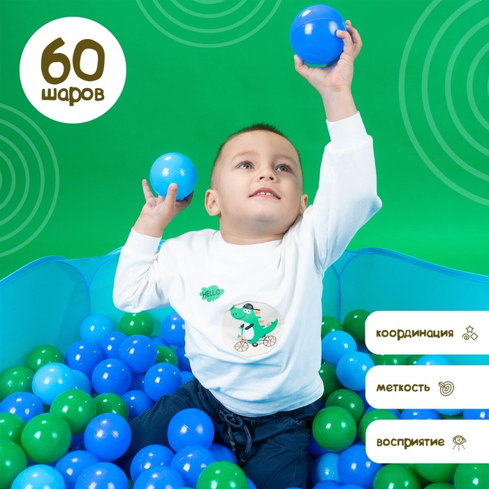 Шарики для сухого бассейна с рисунком, диаметр шара 7,5 см, набор 60 штук, цвет морской