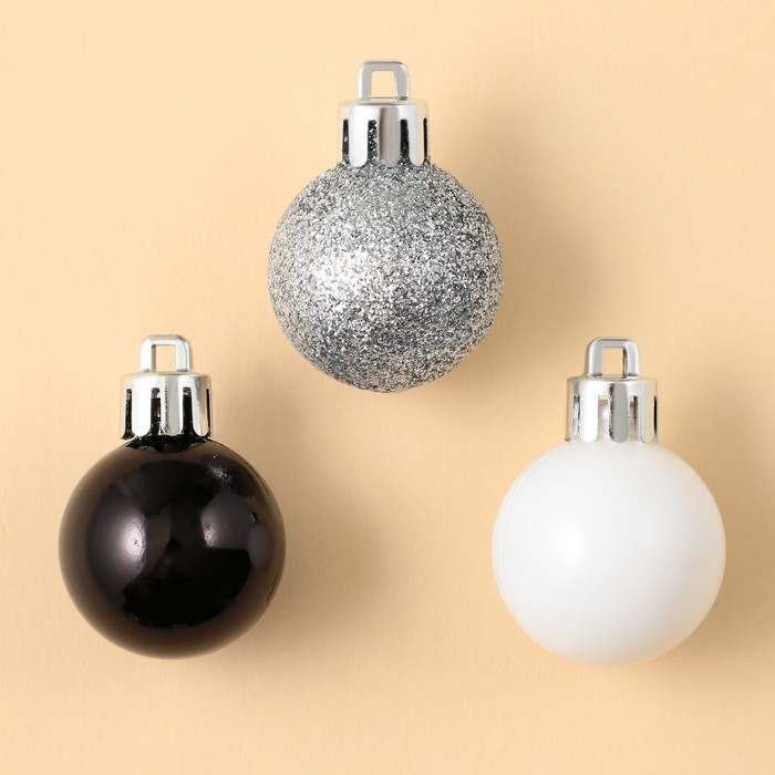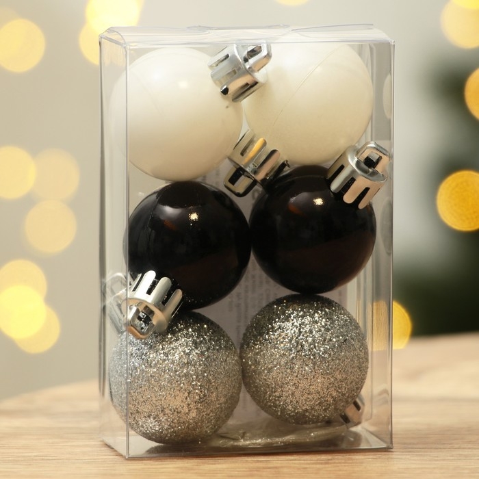 Шары ёлочные новогодние, на Новый год, пластик, d=3 см, 6 шт., цвет чёрный, серебристый, белый