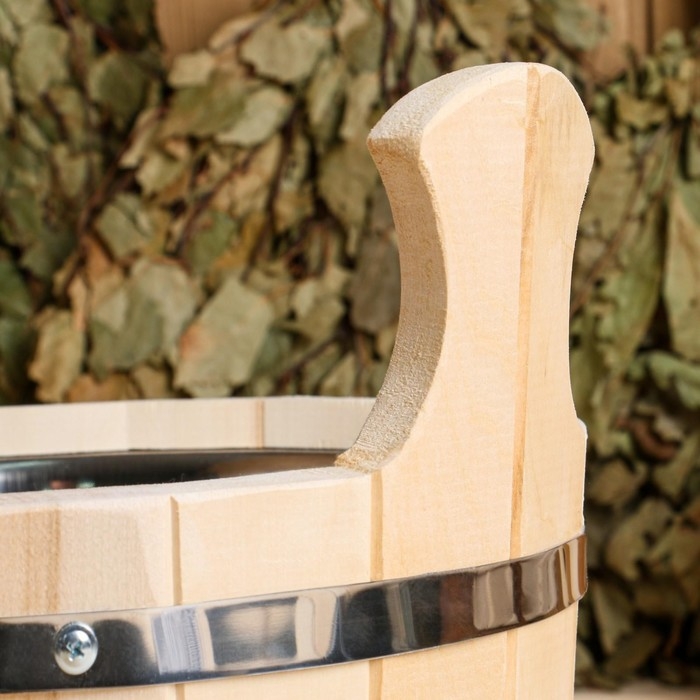 Шайка из липы, 15 л, круглая, нержавеющий обруч, "Добропаровъ"