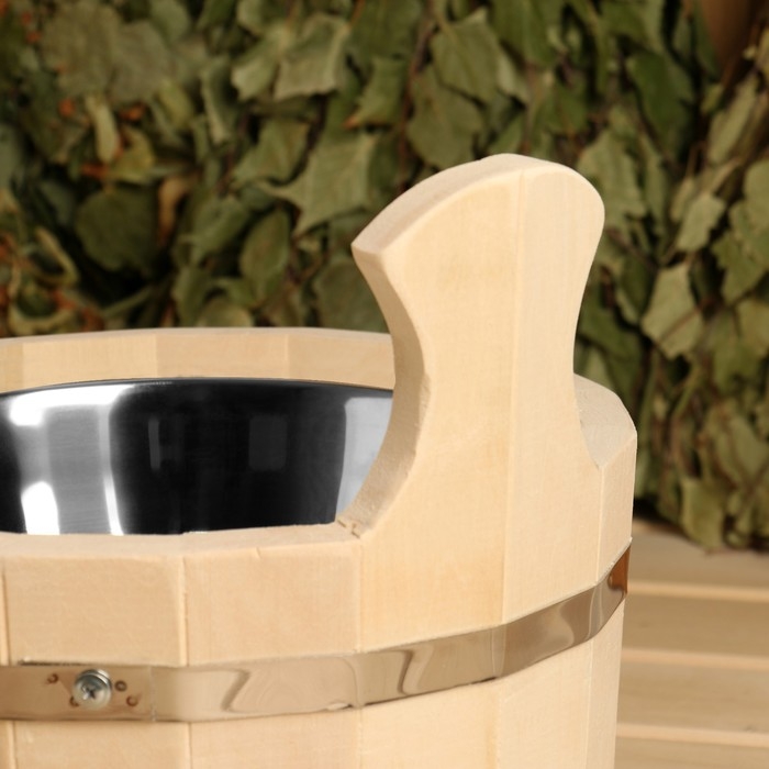 Шайка из липы, 3 л, круглая, нержавеющая вставка, "Добропаровъ"