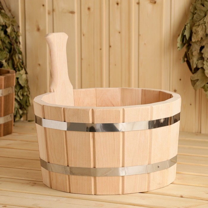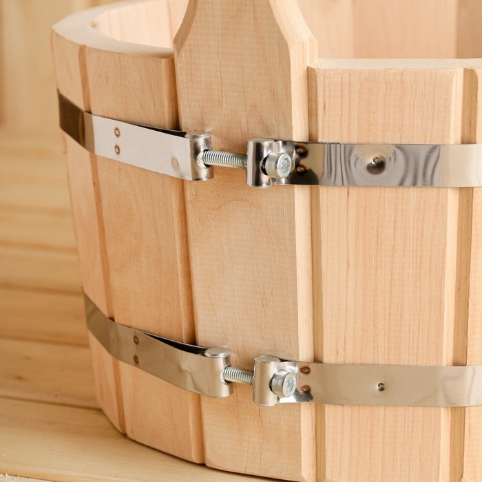Шайка из липы, 15 л, круглая, нержавеющий обруч, "Добропаровъ"