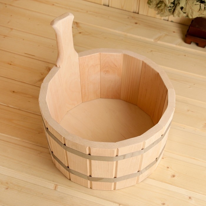 Шайка-ушат, бадья из липы, 5 л, одноручная, нержавеющий обруч, "Добропаровъ"