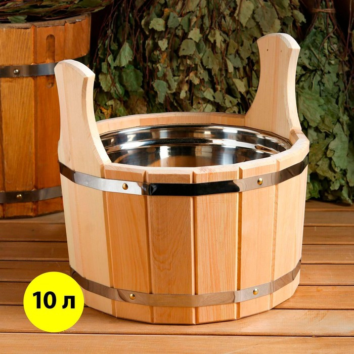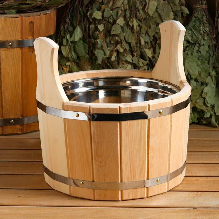 Шайка-таз деревянный, 15 л, с пластиковой вставкой