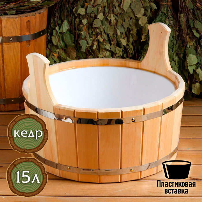 Шайка-таз деревянный, 15 л, с пластиковой вставкой