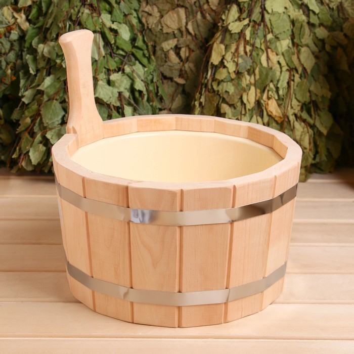 Шайка одноручная из ольхи, 5 л, с пластмассовой вставкой