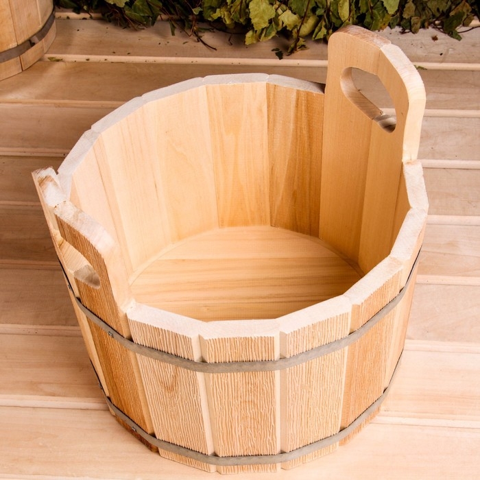 Шайка из липы, 15 л, круглая, нержавеющий обруч, "Добропаровъ"