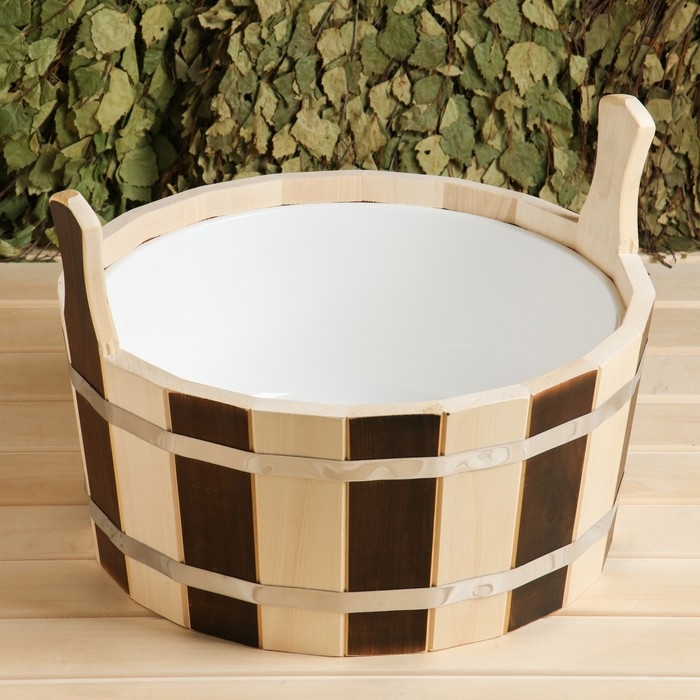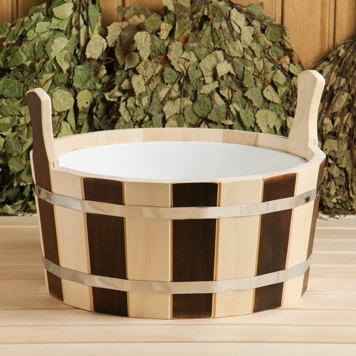Шайка-таз деревянный, 15 л, с пластиковой вставкой