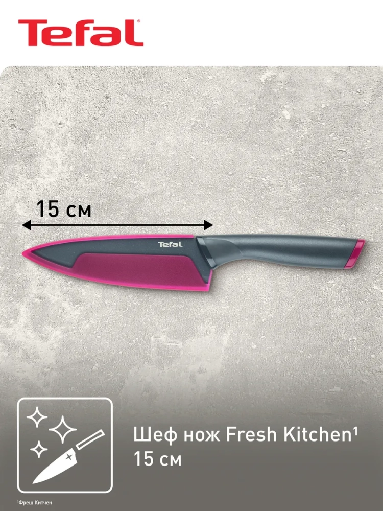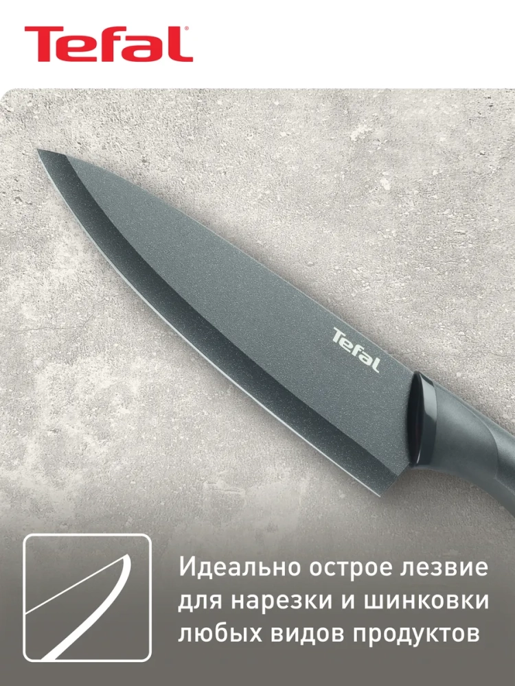 Шеф нож Tefal Fresh Kitchen K1220304 отлично подойдет для любых задач на кухне и справится с измельчением любых ингредиентов. Лезвие ножа выполнено из нержавеющей стали и имеет особое покрытие, которое не дает ингредиентам прилипать во время нарезания.