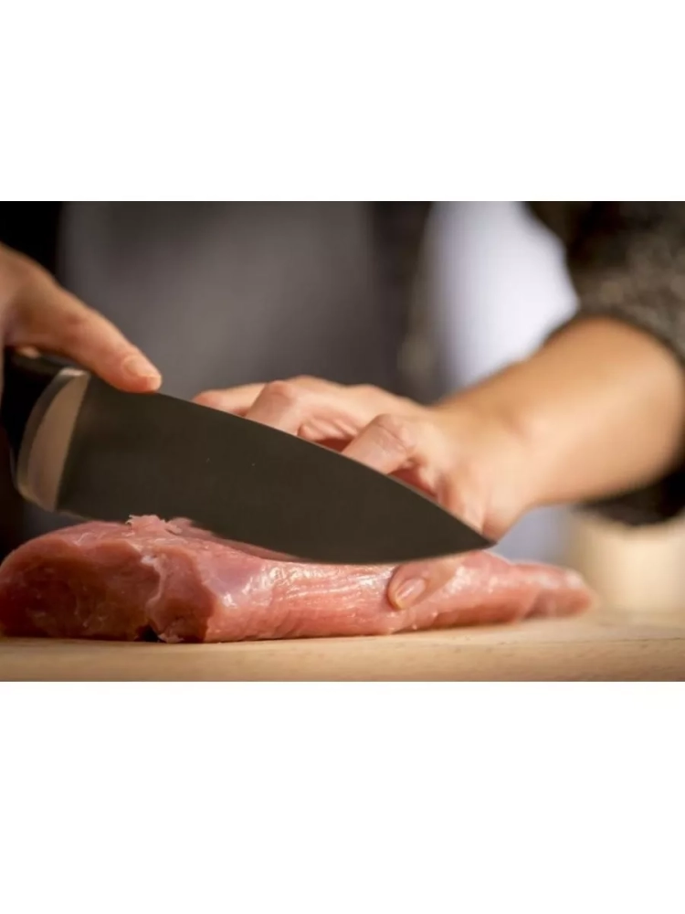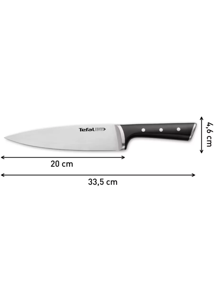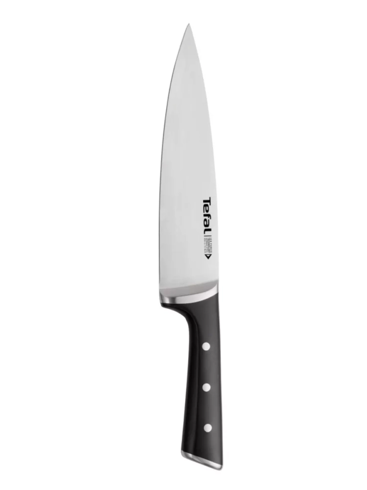 Нож шеф-повара Tefal Ice Force превосходно подойдет для нарезания крупными кусочками. Технология Ice Force: лезвие ножа подвергается резкому охлаждению до температуры -120 градусов сразу после нагревания, что позволяет сделать его прочным, надежным и устойчивым к образованию коррозии.