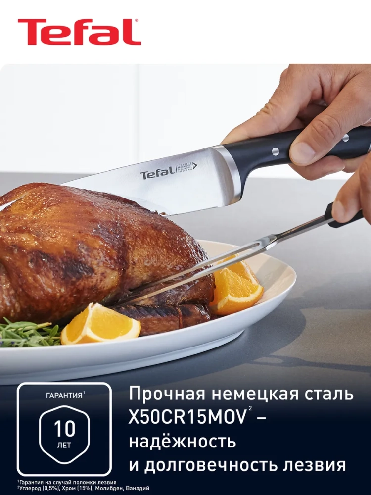 Ножи Tefal Ice Force выполнены из высококачественной немецкой нержавеющей стали, поэтому они прочные и легко точатся. Нож имеет ограничитель для защиты рук от порезов. Кухонные ножи Tefal Ice Force: профессиональное качество и надежность в ваших руках!