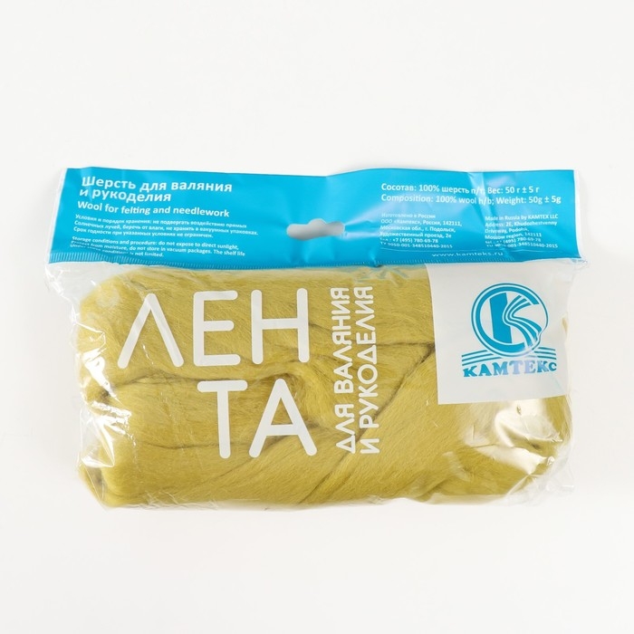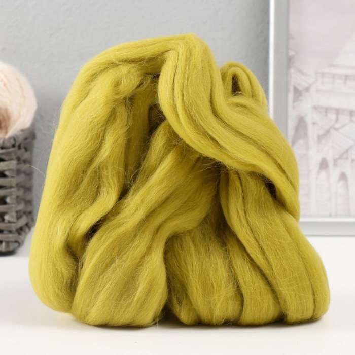 Шерсть для валяния 100% полутонкая шерсть 50 гр (фисташк. - 189)