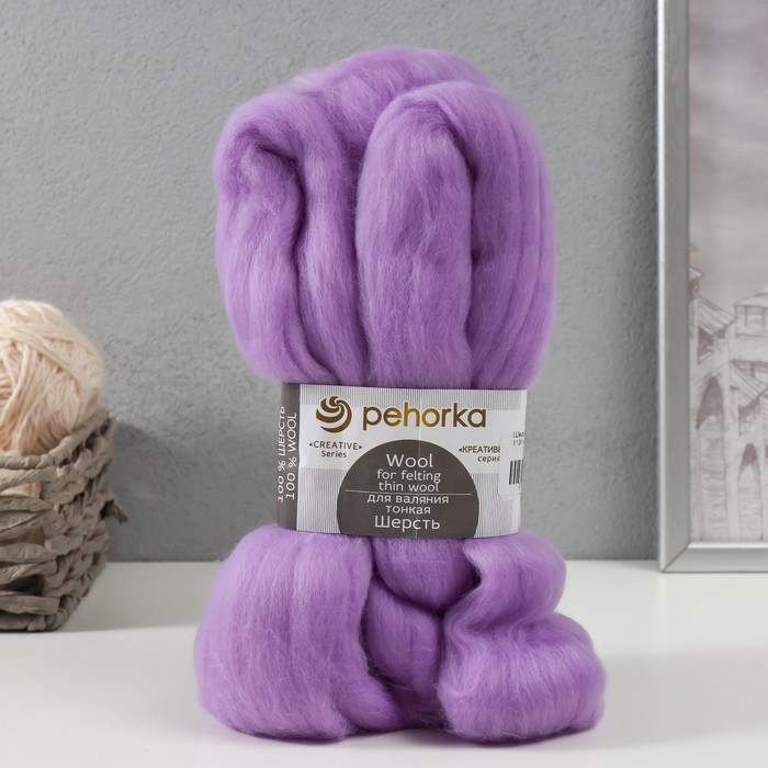 Шерсть для валяния 100% тонкая шерсть 50гр (1131-Сиреневый )