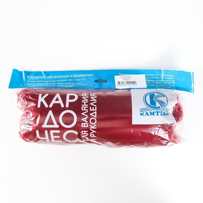 Шерсть для валяния "Кардочес" 100% полутонкая шерсть 100гр (091 вишня)