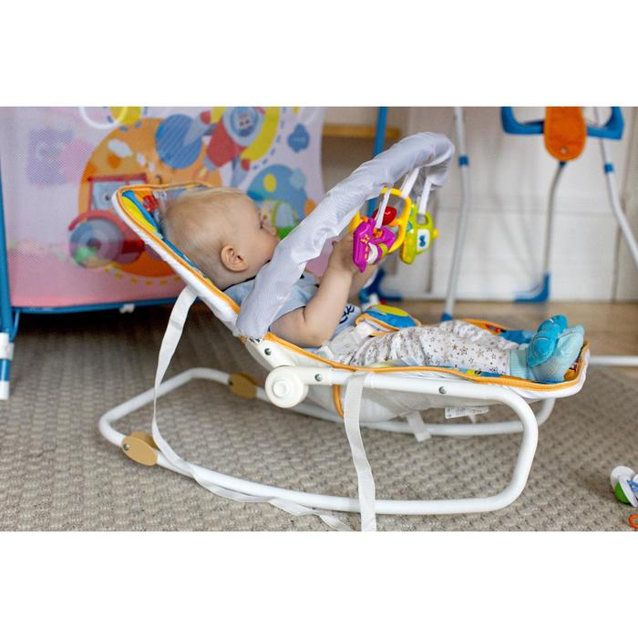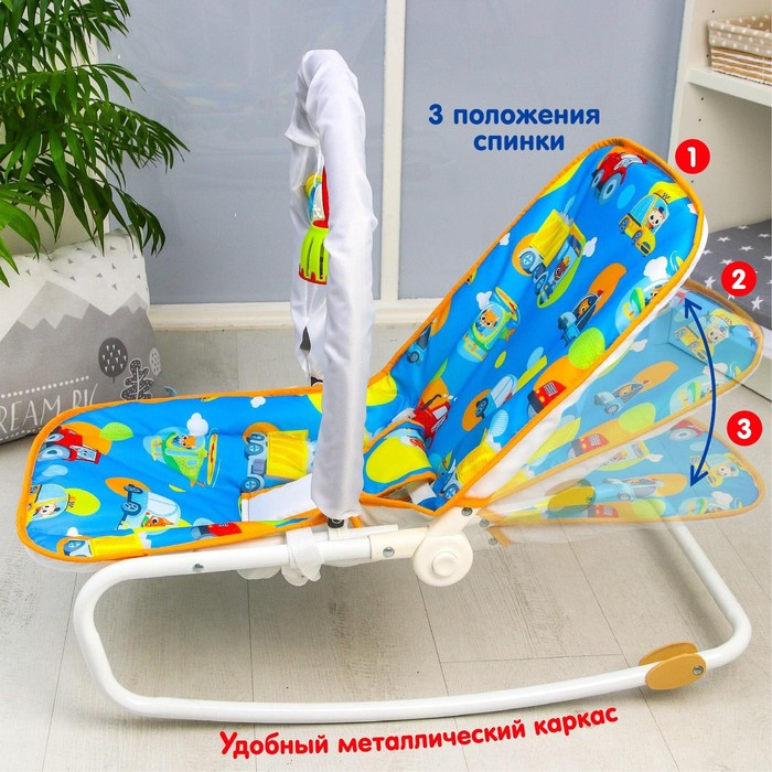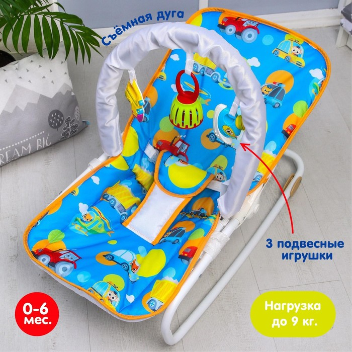 Шезлонг - качалка для новорождённых «Транспорт», игровая дуга, игрушки МИКС