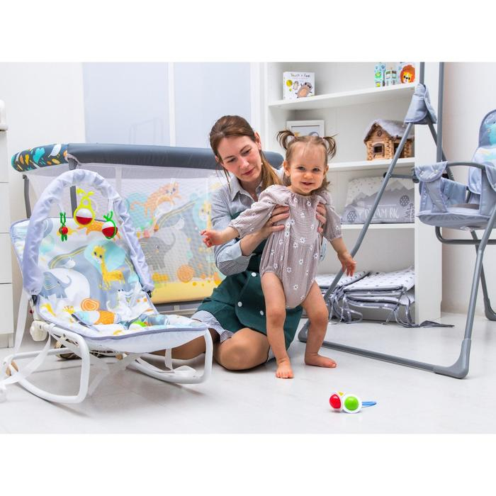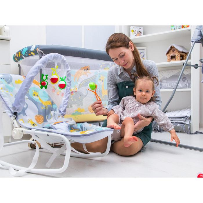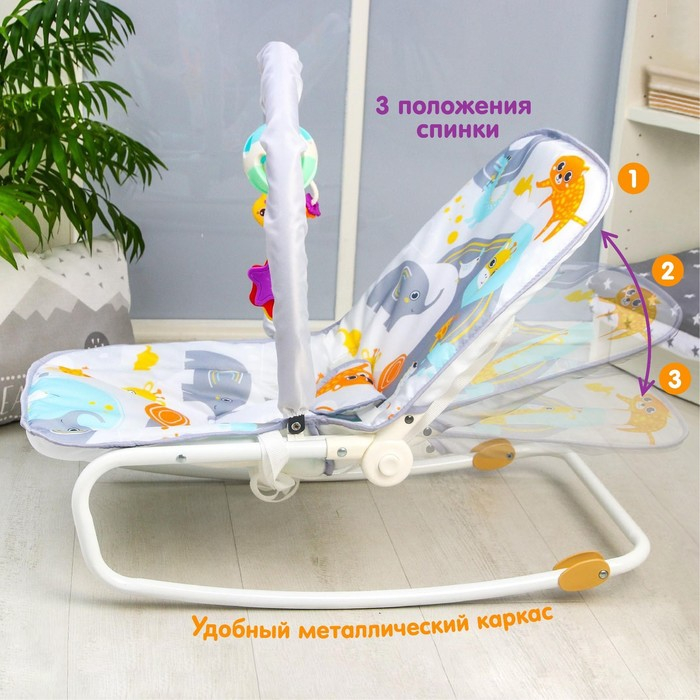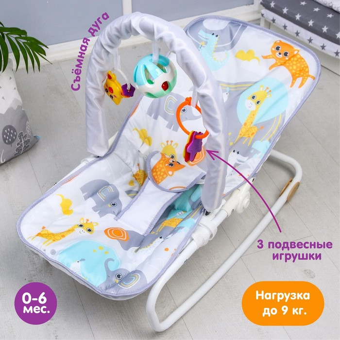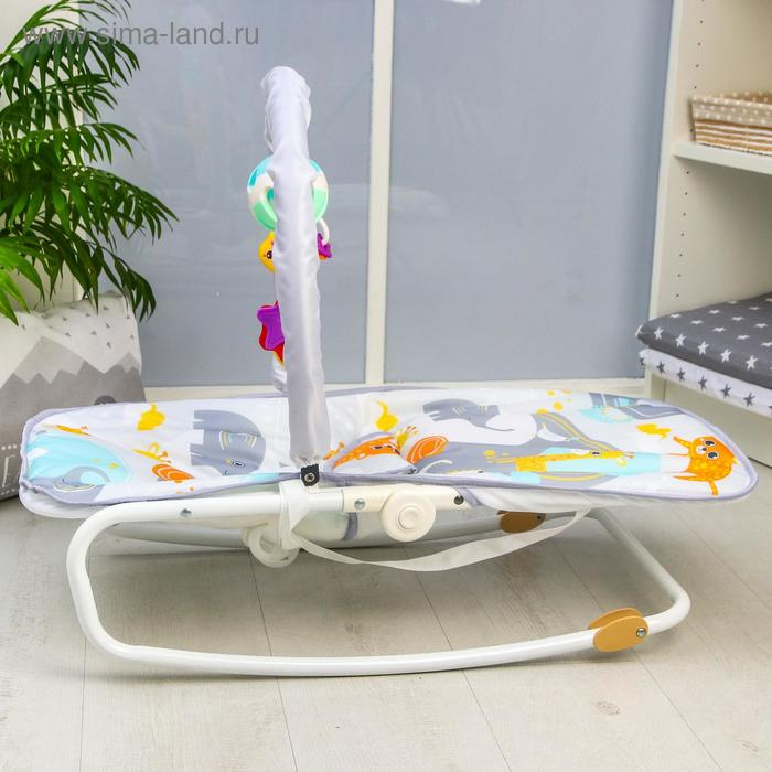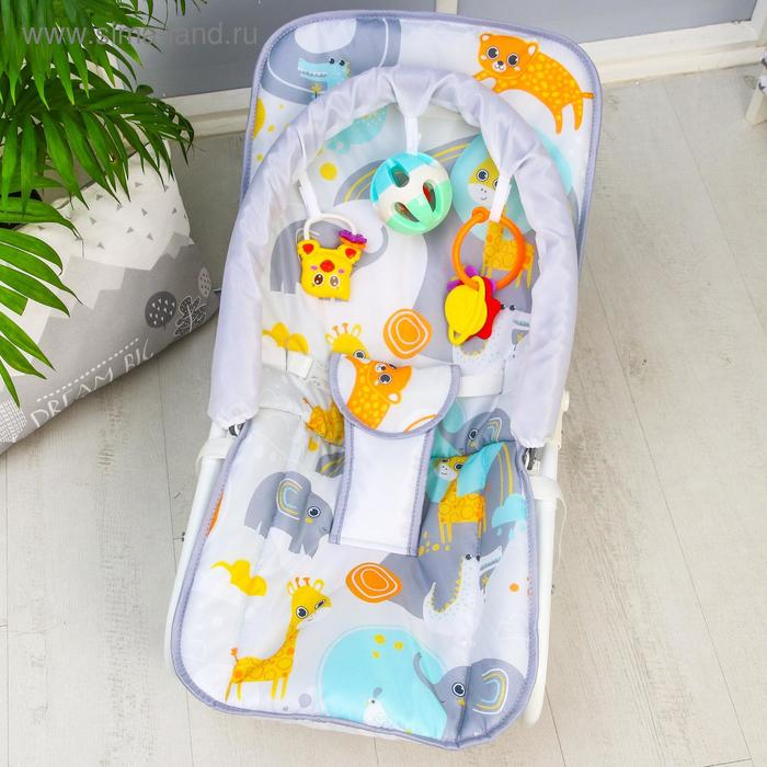 Шезлонг - качалка для новорождённых «Веселые зверята», игровая дуга, игрушки МИКС