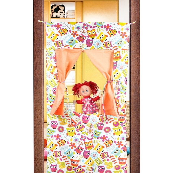 Ширма для кукольного театра "Совы с оранжевым компаньоном",текстиль, р-р 120*60 см