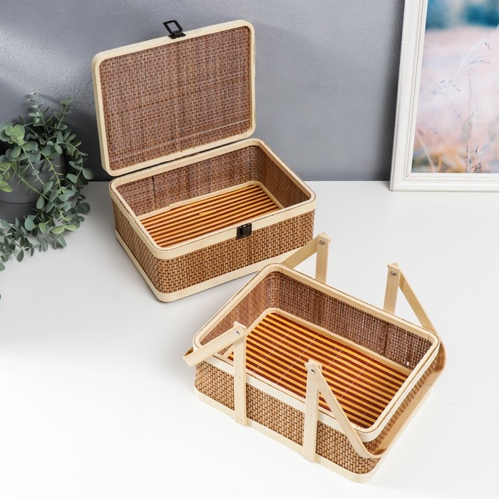 Шкатулка бамбук 2в1 "Прямоугольная" с ручками 20х20х26 см