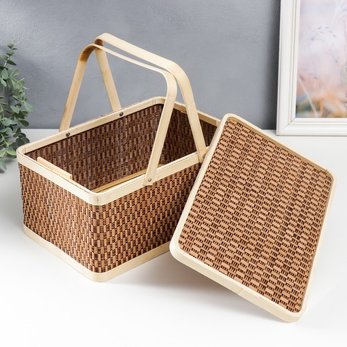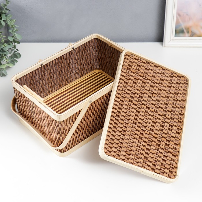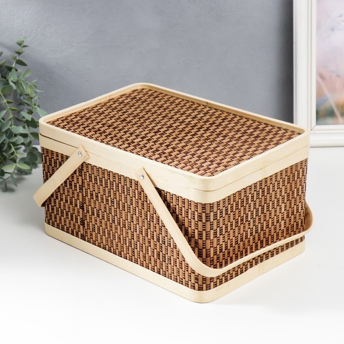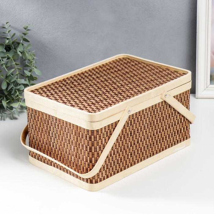 Шкатулка бамбук "Прямоугольная" с ручками 16х20х30 см