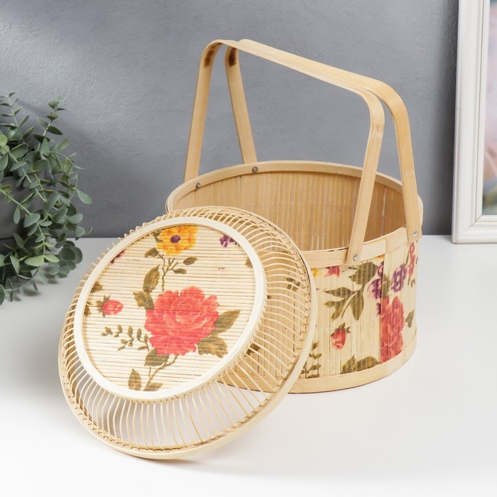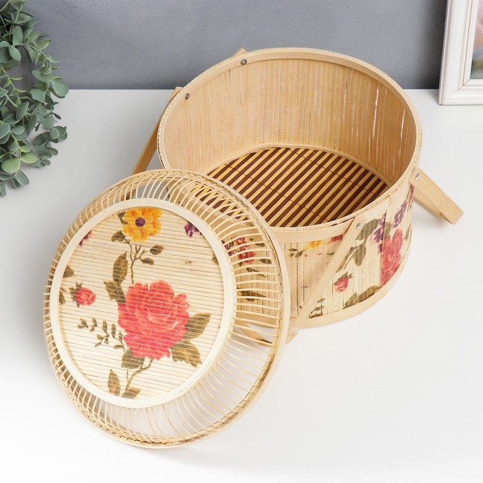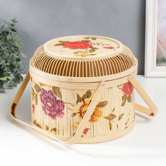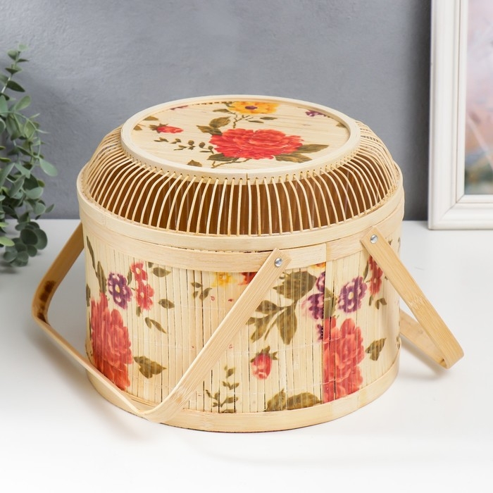 Шкатулка бамбук "Сад с пионами" ажур, с ручками 19х26х26 см