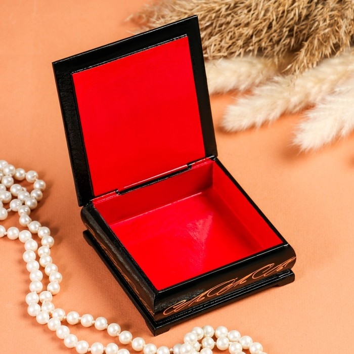 Шкатулка изготовлена из дерева, покрыта краской. Заранее напечатанное изображение приклеено и покрыто лаком. Дополнительно мастер наносит узор.