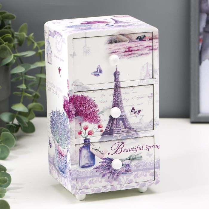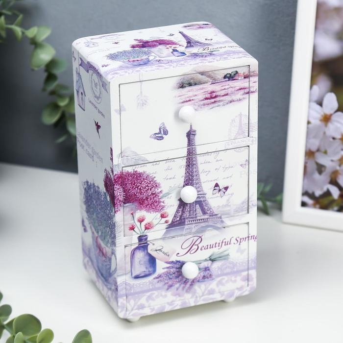 Шкатулка дерево комод "Эйфелева башня и лаванда" 19,5х11х8 см