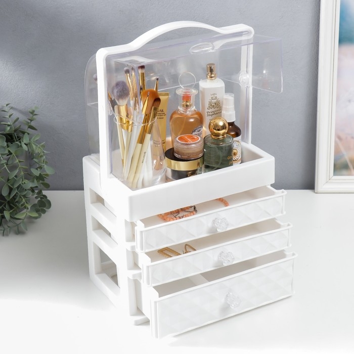 Шкатулка для косметики пластик "Ромбы. Белая. 3 ящика" 42х16,5х25 см