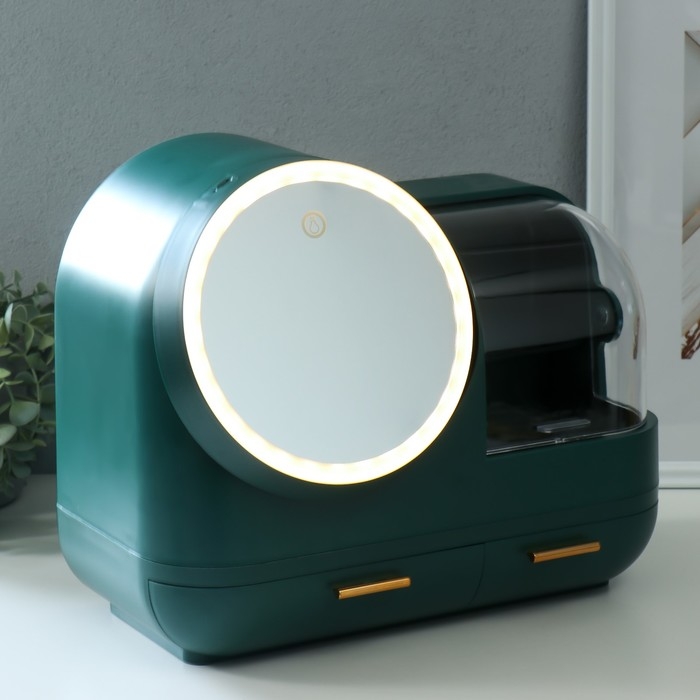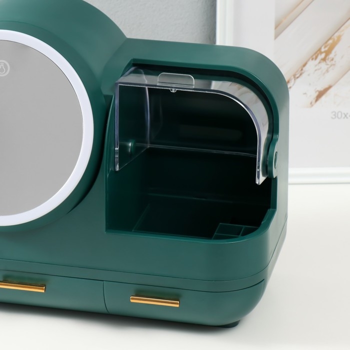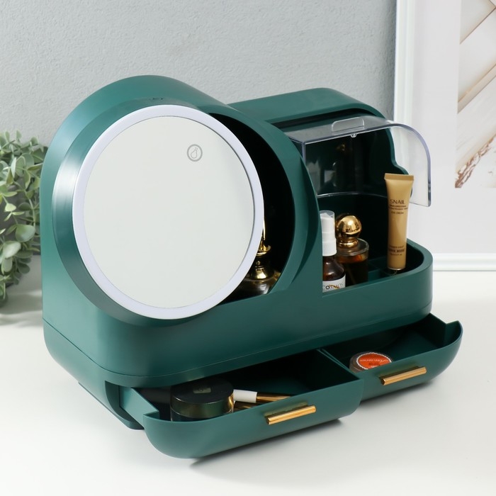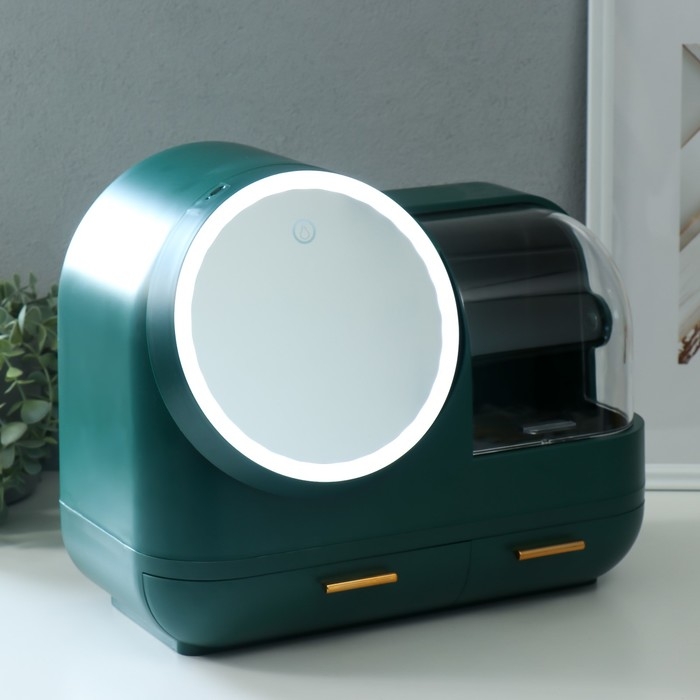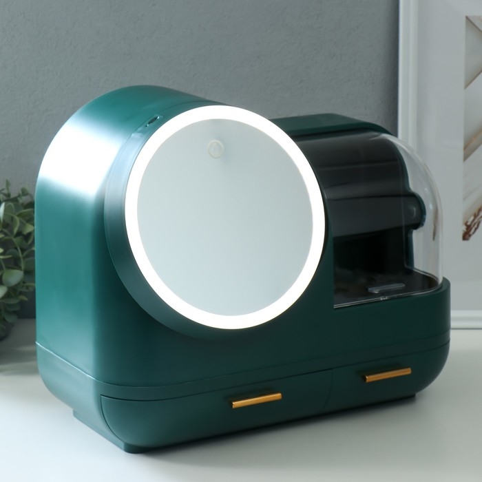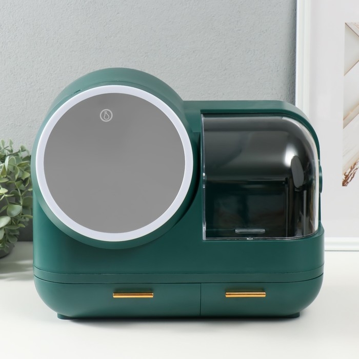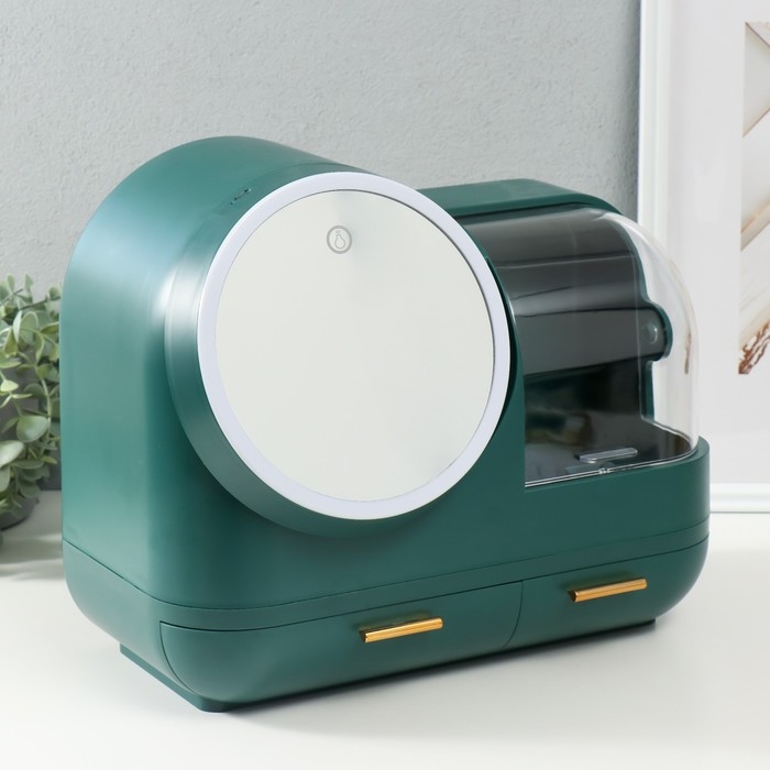 Шкатулка для косметики пластик, зеркало с подсветкой "Тёмно-зелёная" 37,5х22х31 см