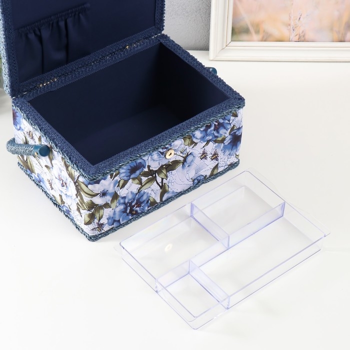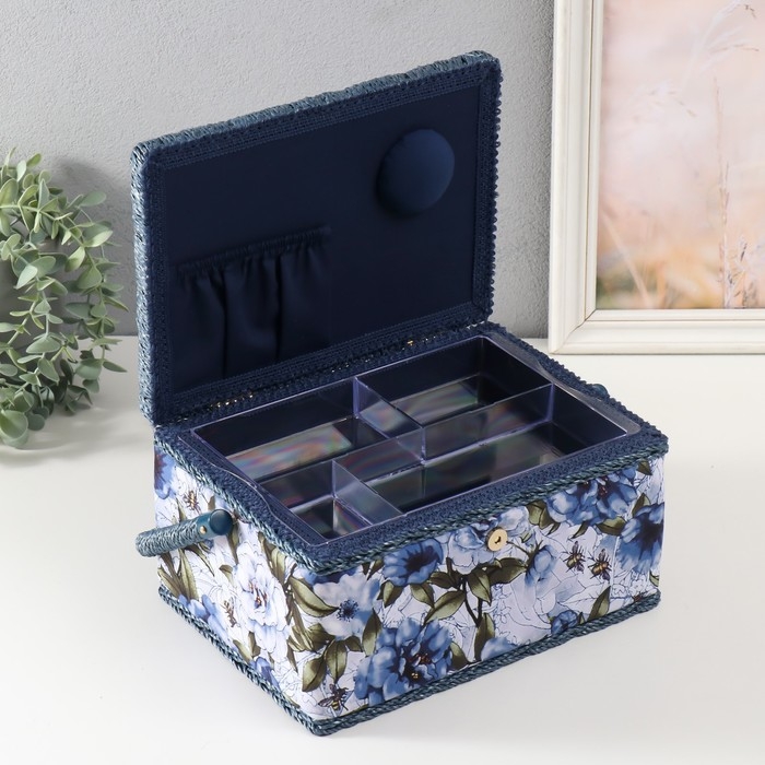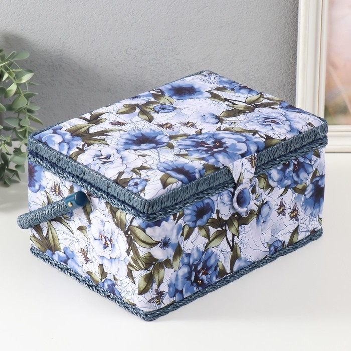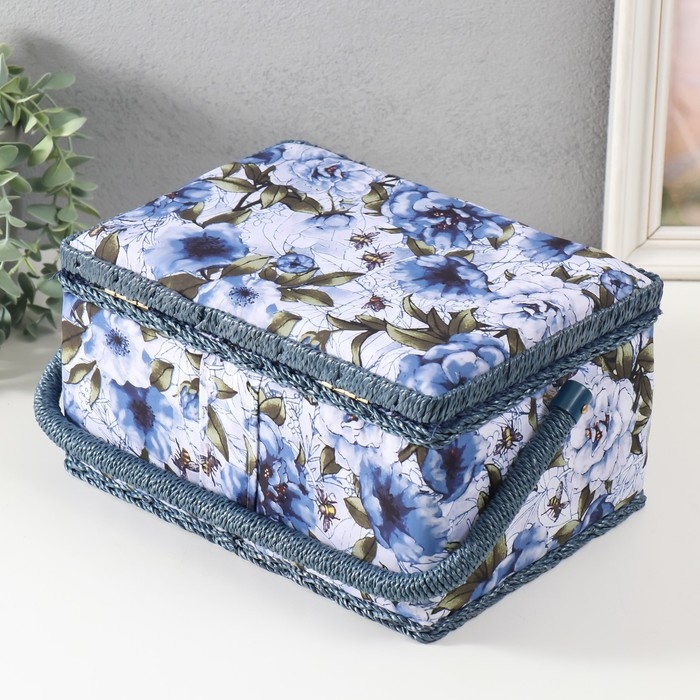 Шкатулка для рукоделия "Бело-голубые пионы" 19х26х14,5 см