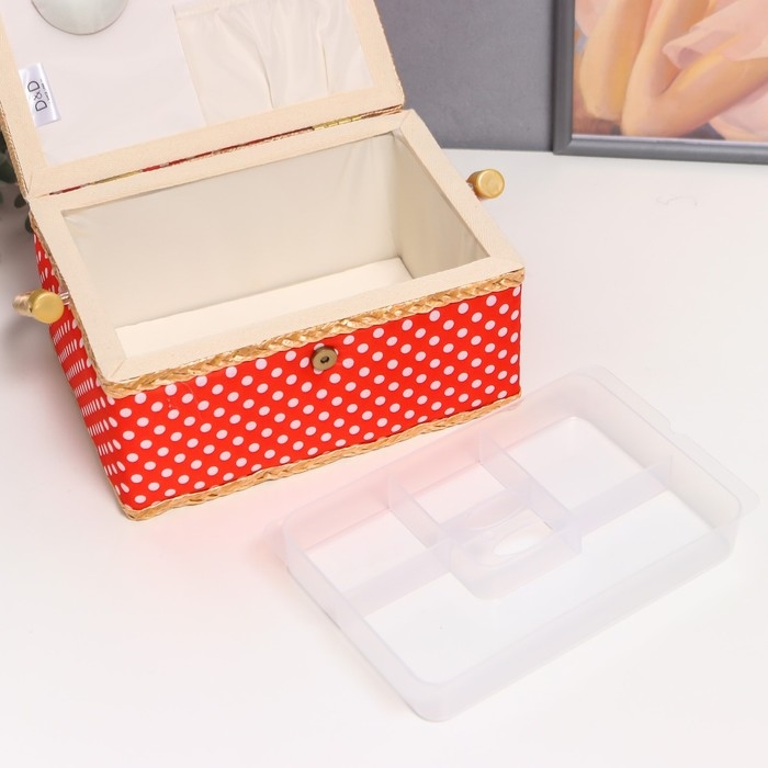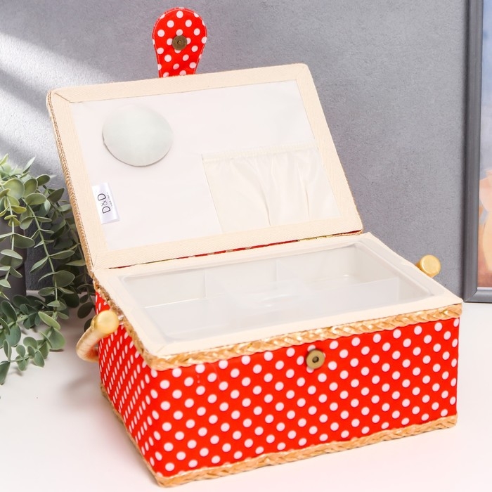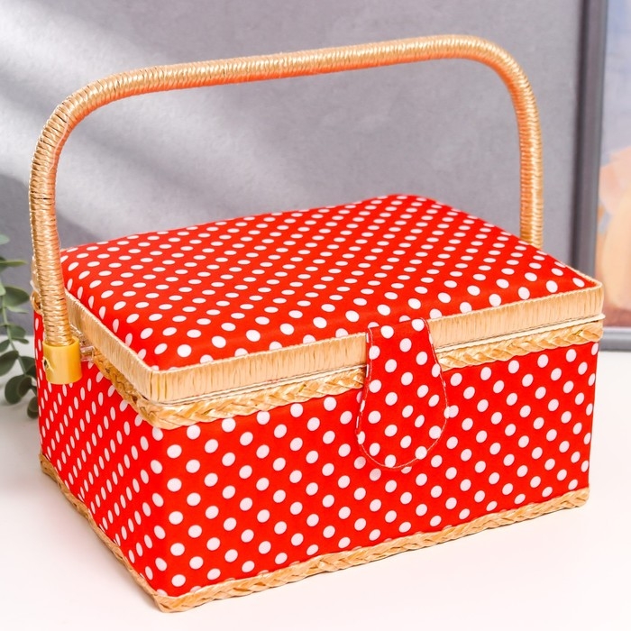Шкатулка для рукоделия "Белый горох на красном" 13х17,5х24 см