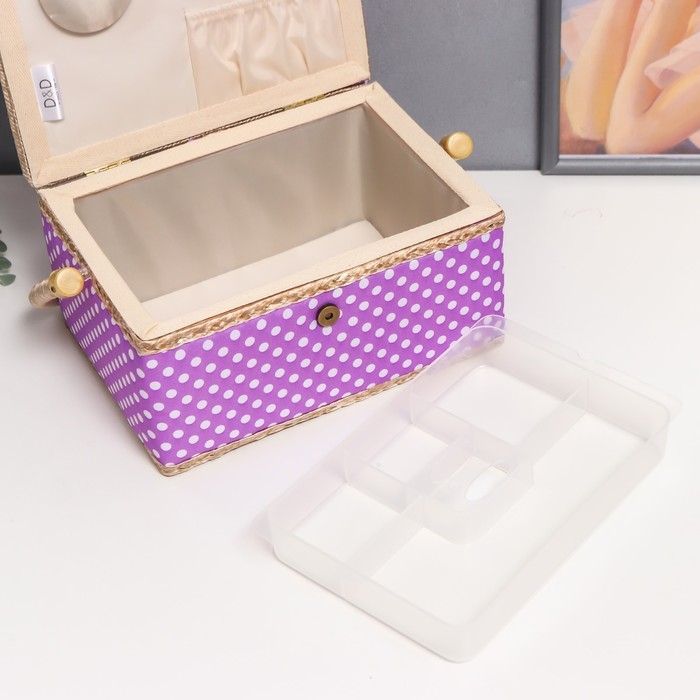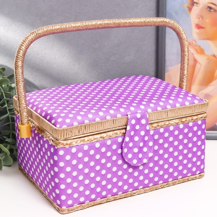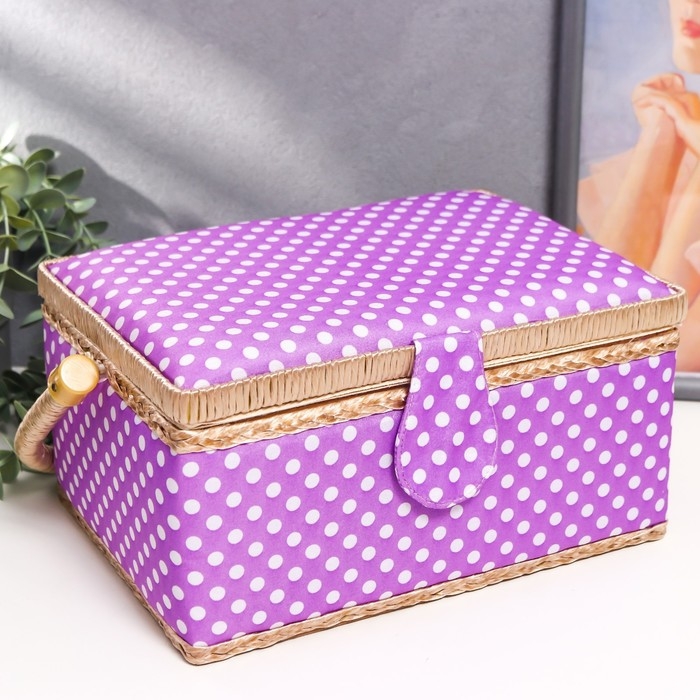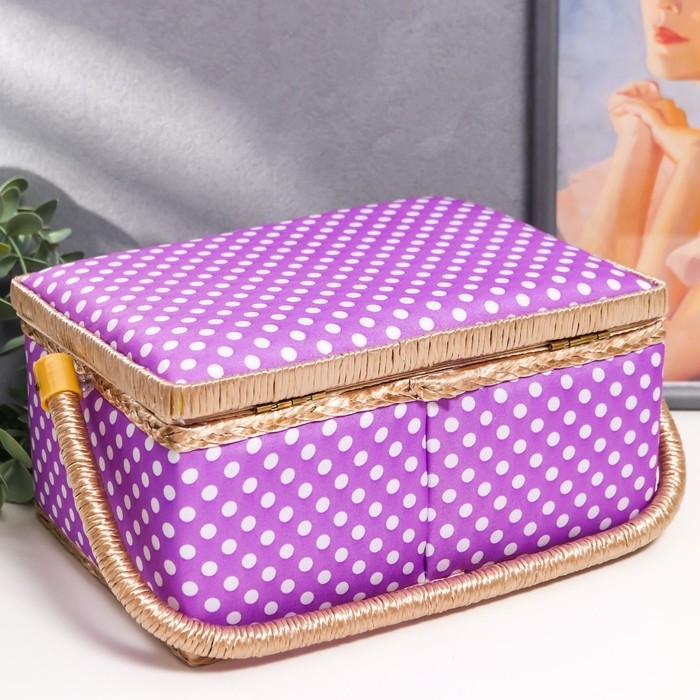 Шкатулка для рукоделия "Белый горох на сиреневом" 13х17,5х24 см