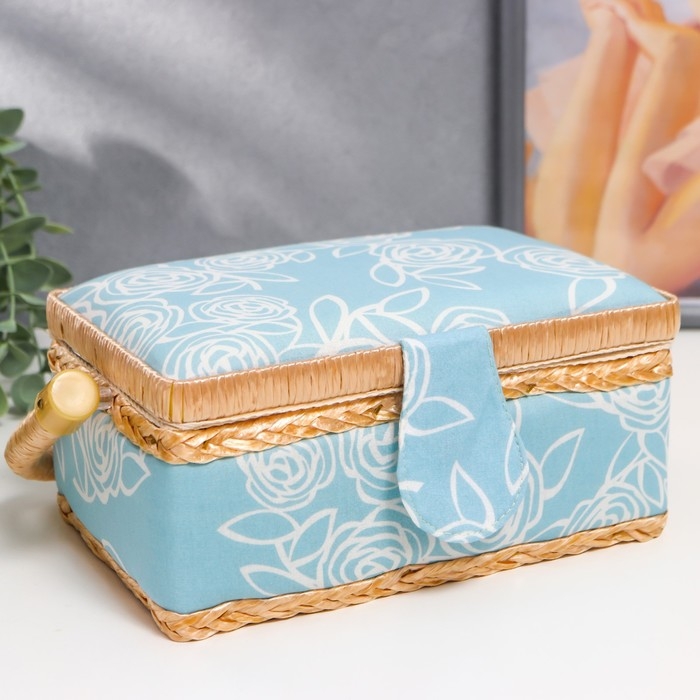 Шкатулка для рукоделия "Розы на голубом" 10х13х19,5 см