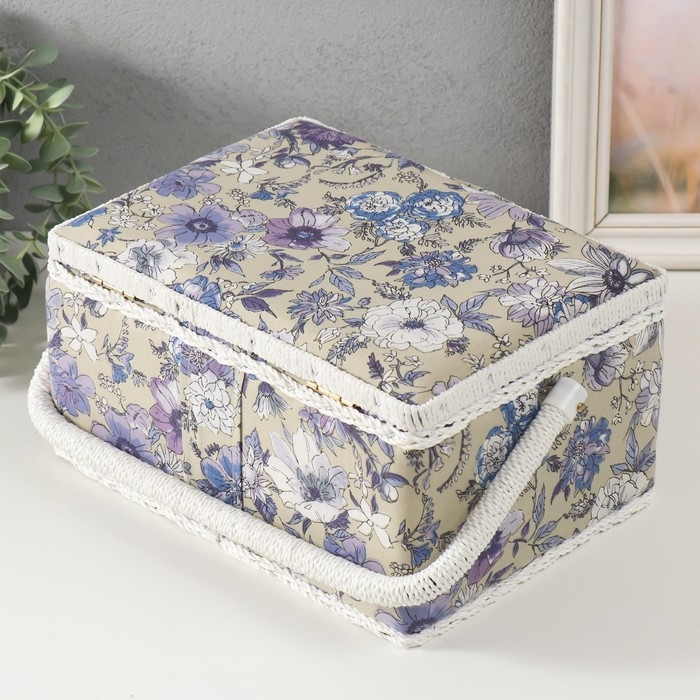 Шкатулка для рукоделия "Сиреневая цветочная поляна" 19х26х14,5 см