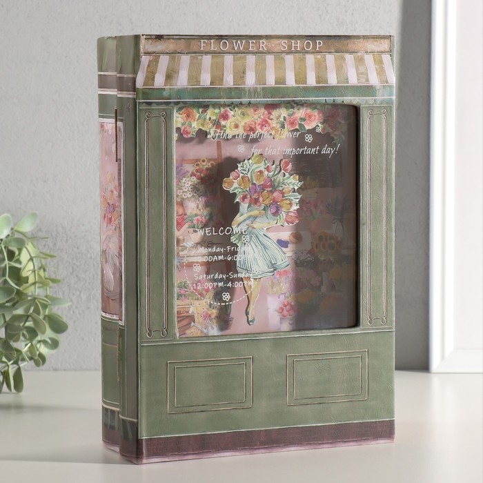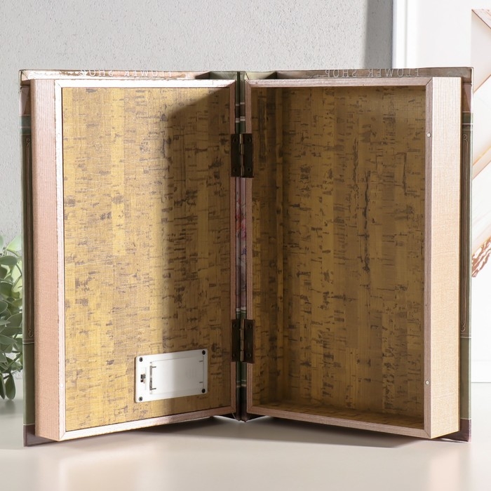 Шкатулка-книга дерево, кожзам, свет "Цветочный магазин" 28х19х7,6 см