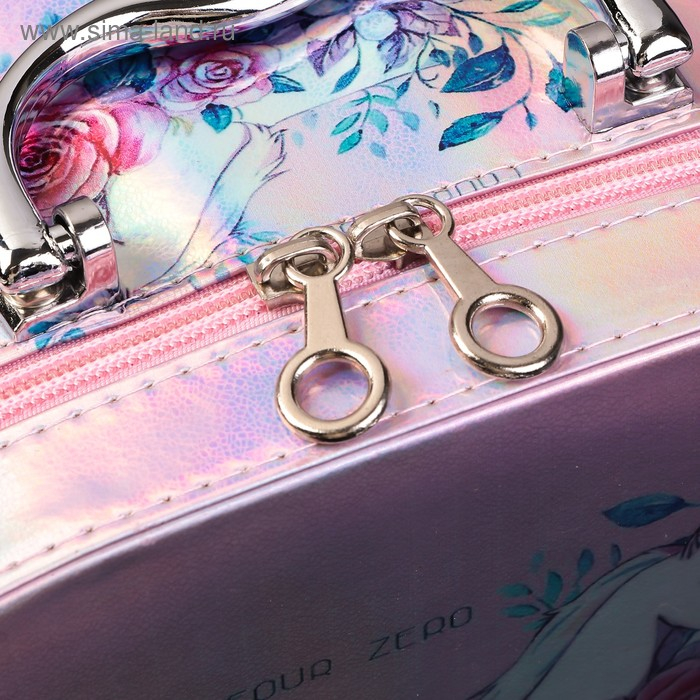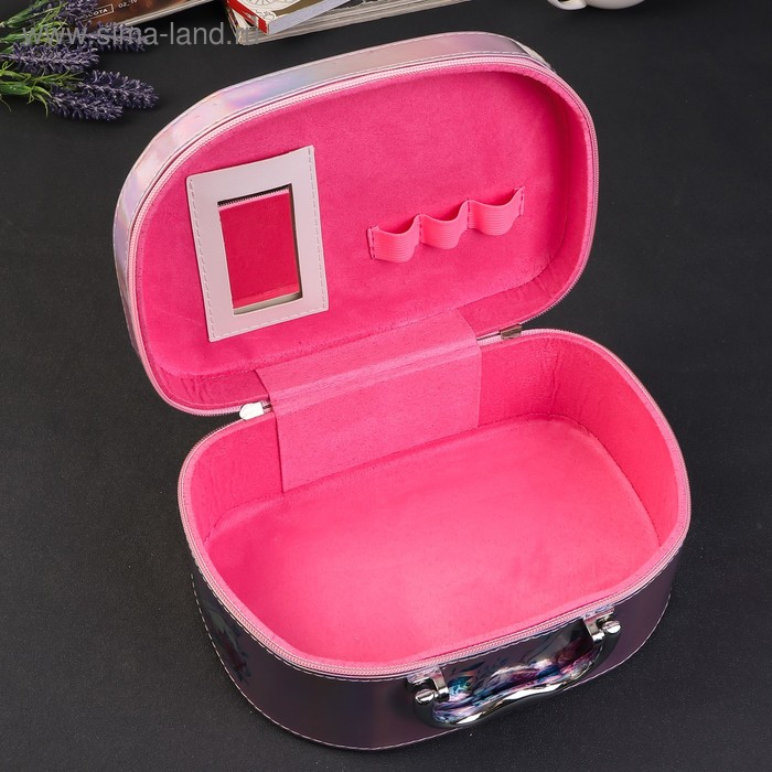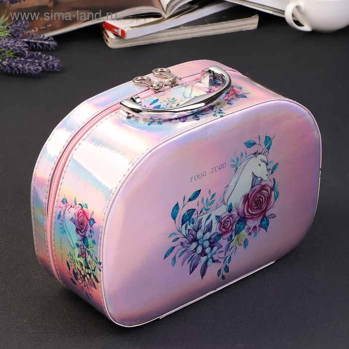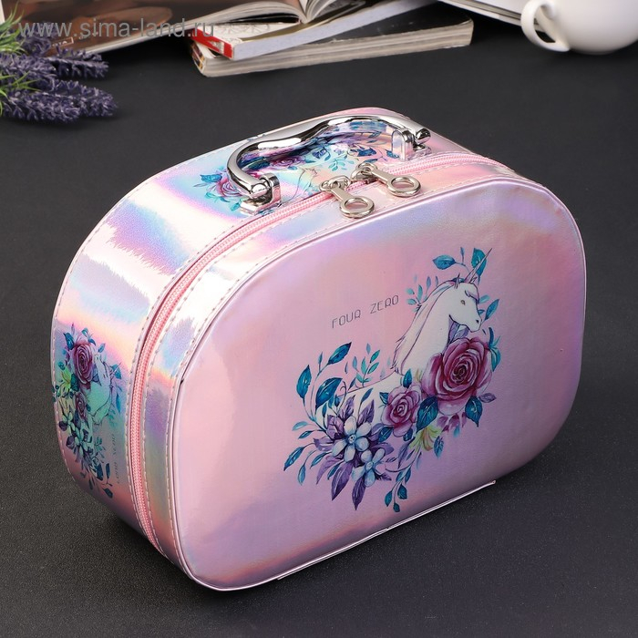 Шкатулка кожзам для косметики "Единорог в цветах" перламутр 11х18х25,5 см
