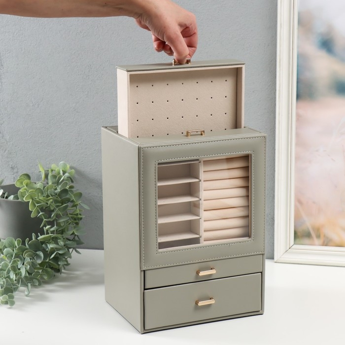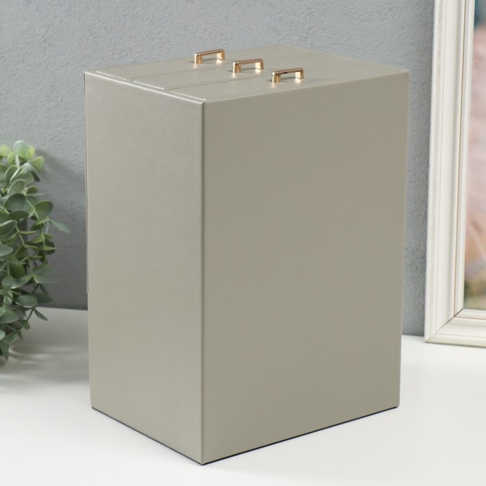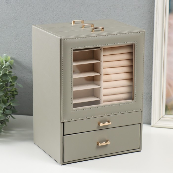 Шкатулка кожзам для украшений "Архивариус с двумя ящичками" серая 20х15,5х28 см