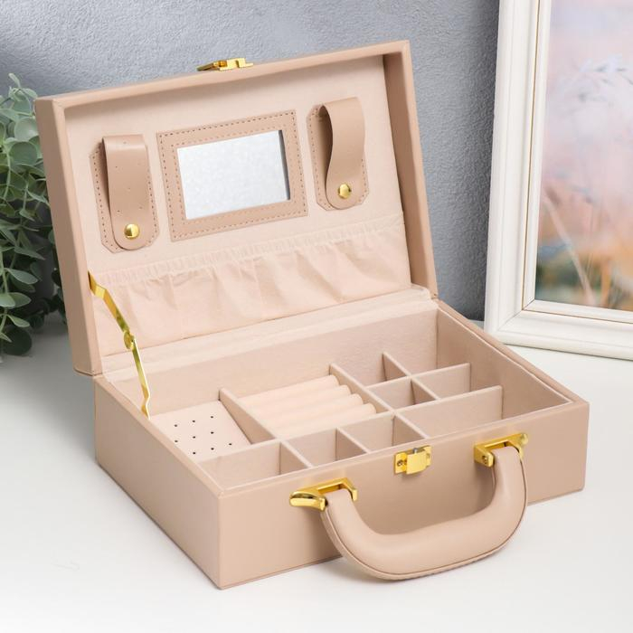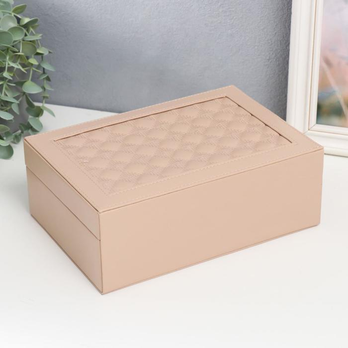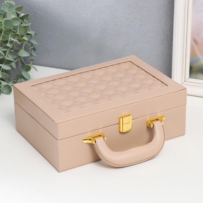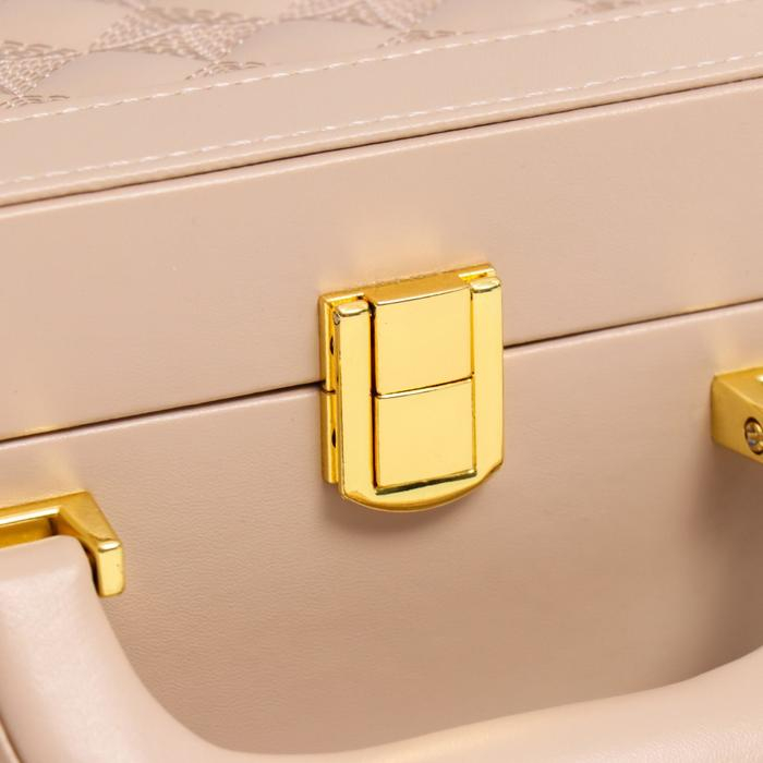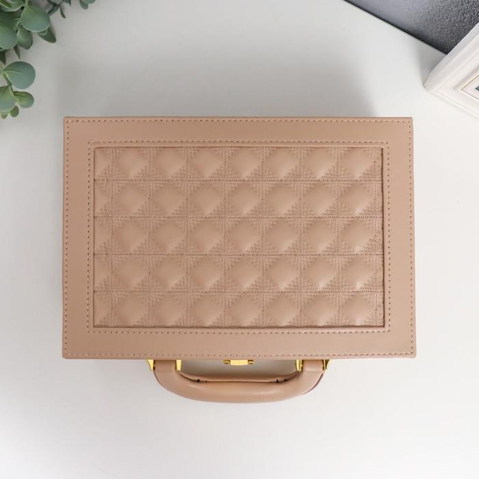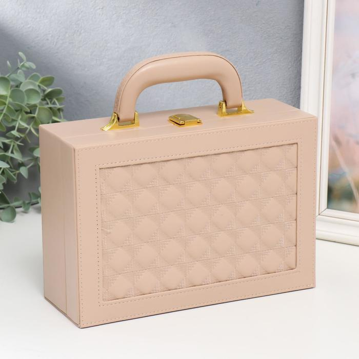 Шкатулка кожзам для украшений чемодан "Крупная клетка" бежевая 9х25х17 см