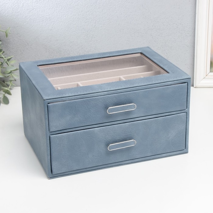 Шкатулка кожзам для украшений "Эльба. Два яруса" синяя 25х18х14 см